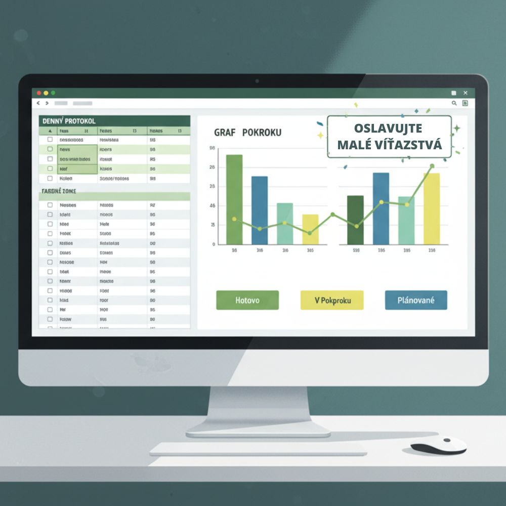 Interaktívny Excel súbor so všetkým, čo potrebujete: denný protokol, automatické grafy pokroku. Sledujte svoj pokrok vizuálne a oslavujte malé víťazstvá.